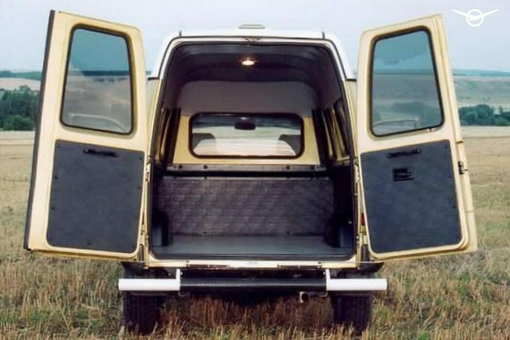 Колесную базу нарастили на 240 мм: у прототипа она доходила до 3000 мм. Грузовая платформа получилась длиной в 2190 мм и шириной в 1560 мм. В высоту отсек составил 1500 мм за счет жесткой крыши с остеклением. Туда можно было загрузить до 5 куб. м поклажи весом не более 800 кг.