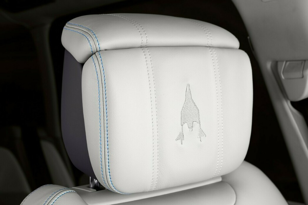 Кроме того, в отделке салона разработчики использовали части от посадочной платформы первого воздушного судна компании, совершившего полет в декабре 2018 года. Из них сделали детали для пары подстаканников. Также салон украшен эмблемой отряда Future Astronaut, красующейся на дверных ручках, подголовниках и на панели над перчаточным ящиком.