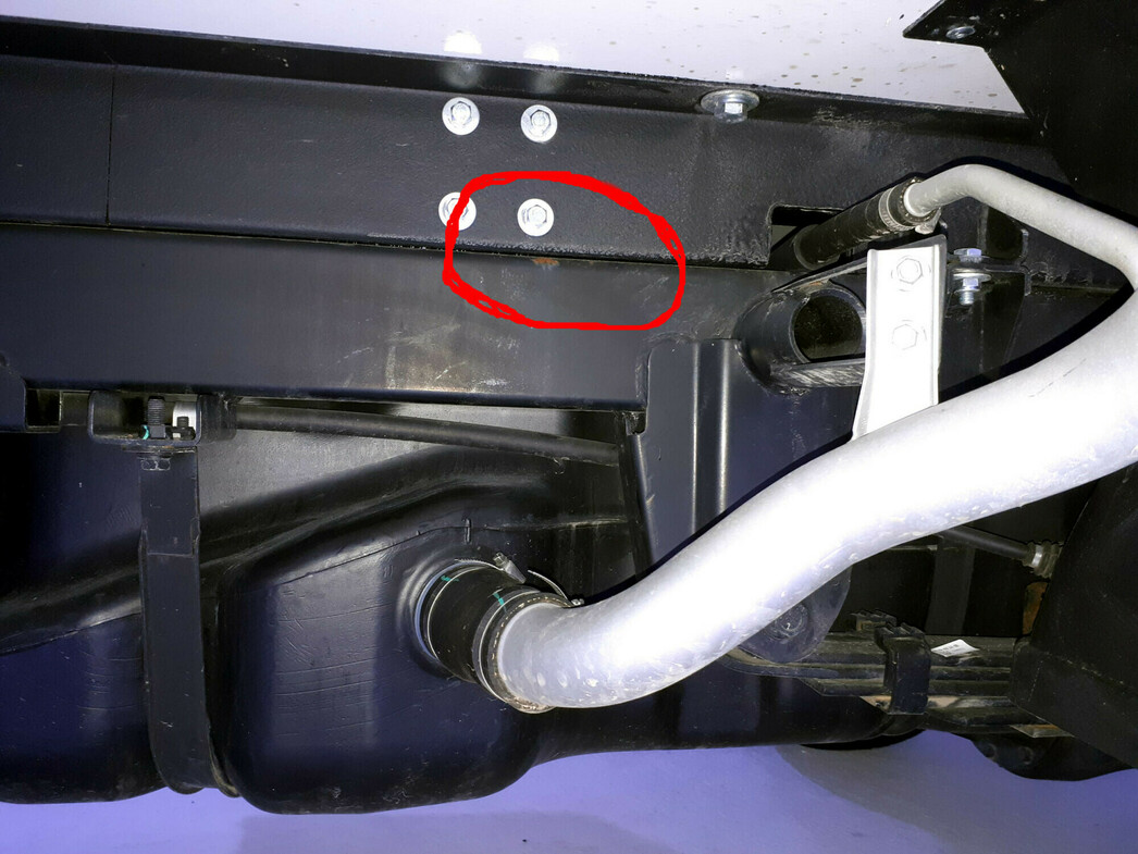 Продолжая осмотр, заглянул вниз и заметил небольшую ржавчину на раме. Похоже, что при установке надстройки повредили окрас. Это уже не очень хорошо. Так что сразу после покупки грузовичка, стальной «хребет» надо обработать антикором. А еще следить за состоянием множества патрубков, которые разместили в самых «грязных» местах.