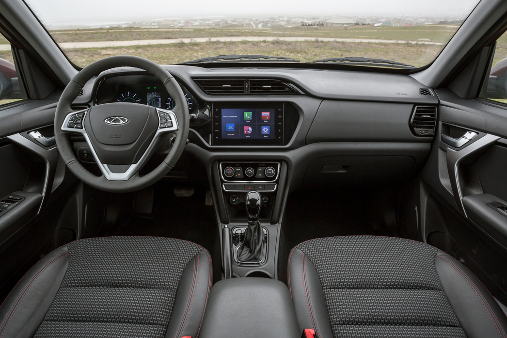 Кардинальным образом переработанный интерьер новинки так же смотрится очень по-европейски — ни намека на китайское происхождение автомобиля. Пластик, возможно, покажется особо привередливым автолюбителям излишне «пластиковым», но не настолько, чтобы портить владельцу настроение. Кстати, насчет настроения. Оно, наоборот, будет всегда на уровне, если при покупке Tiggo 3 отдать предпочтение версиям с мультимедийной системой Chery Cloudrive. Она, по сути, является китайским аналогом Apple CarPlay и Android Auto, мало им в чем уступающим. Как и положено, система основана на облачных технологиях, синхронизируется со смартфоном с последующим выводом контента на экран 8-и дюймового сенсорного дисплея.