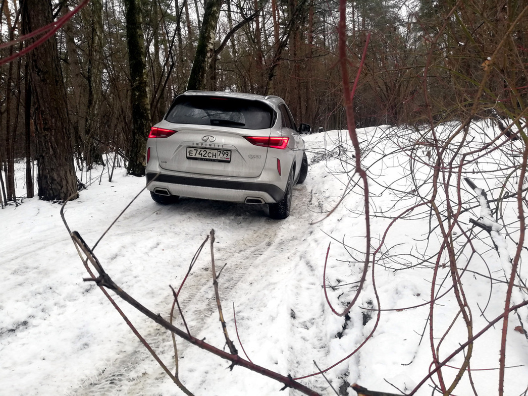 Принудительных блокировок, «понижаек» и прочих чисто джиперских атрибутов, разумеется, на QX50 не встретите. Да и большой грех на столь красивом автомобиле лезть в грязь. Однако если дорога к даче или месту отдыха на природе будет раскисшей, то можете не сомневаться — система AWD, которой вооружен «полтинник», оправдает возложенные на него надежды.