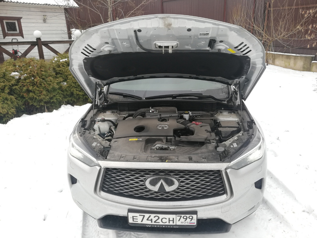 Итак, почему же ускакавшие 84 «лошадки» совершенно не заметны? Ведь, в конце концов, QX50 не настолько уж и легче канувшего в Лету собрата. А дело всё в том, что в качестве силовой установки используется 2-литровая «четверка» Infiniti VC-Turbo с изменяемой от 8:1 до 14:1 степенью сжатия. Японский производитель очень горд своим пламенным сердцем.