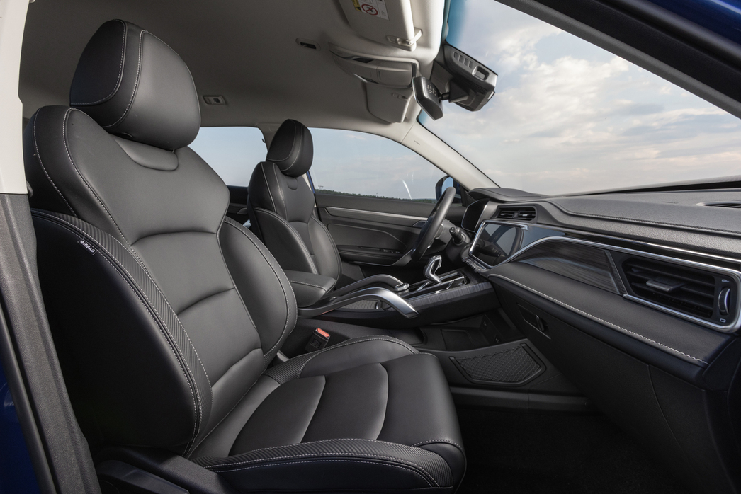 Кроме того, в базовое исполнение включен круиз-контроль, двухзонный климат-контроль и кнопка запуска двигателя. Продолжают список 17-дюймовые диски, светодиодные дневные ходовые огни, задние фонари и указатели поворота. Кресла машины отделаны высококачественной экокожей, притом — с модными вставками под «карбон».