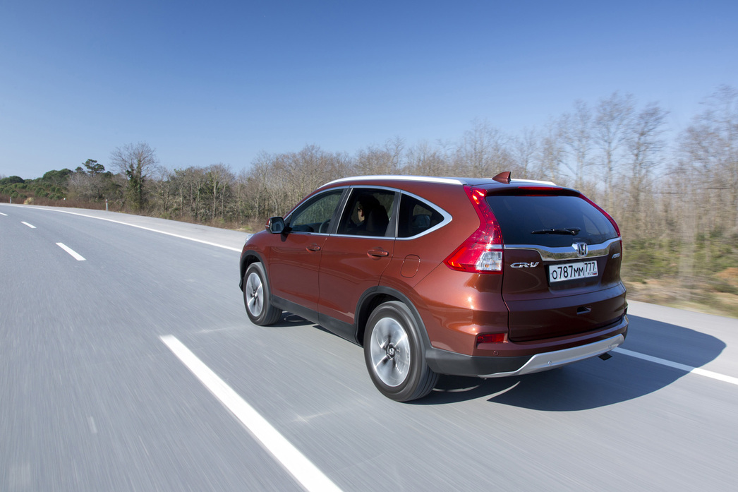 Опции – это хорошо. Но что же с одной из главных претензий, предъявлявшейся ко всем Honda CR-V – с совсем не кроссоверным дорожным просветом? 165 мм клиренса совсем не красили полноприводную машину, претендующую на хоть сколь-нибудь заметную проходимость. В Honda CR-V 2015 модельного года «лифтингу» подвергся не только «фэйс», но и подвеска. С помощью новых пружин и амортизаторов ее дорожный просвет подняли до 180 мм. Не так много, конечно, но теперь одна из главных технических претензий к этому кроссоверу снята. Параллельно инженеры изменили конструкцию рычагов передней подвески, поворотных кулаков и подрамника. Благодаря этому у машины выросла и колея – тоже на 15 мм. Столь серьезные изменения в ходовой части просто обязаны были сказаться и на поведении на дороге. Городской режим движения почувствовать изменения не дает – слишком малы скорости. Выбираемся на шоссе, жмем на газ, проходим поворот, другой, проскакиваем по стыкам пролетов моста, форсируем участок с выбоинами... Вроде, все нормально. Существенное различие в поведении по сравнению с дорестайлинговой версией, пожалуй, лишь одно. На ходу авто стало чуть более «дубовым». Самую малость. Человек, который впервые сядет за руль обновленной CR-V, вообще ничего не заметит – скажет, что машина комфортна на трассе и не напрягает на высоких скоростях. Что среднестатистическому пользователю и нужно. Она и правда управляется очень неплохо.