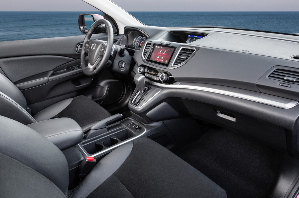 Что касается интерьера модели, то отныне потенциальным покупателям версия Honda CR-V с американским мотором станет более или менее понятно, за что им предлагается платить столь серьезные деньги. До сих пор непременным спутниками этого силового агрегата был дубовейший пластик в салоне и кондовая «мультимедиа». На рынке США такое «пипл хавает» – за адекватно невысокий ценник. А в России за подобное аскетичное «счастье» просят почему-то более чем полтора миллиона. Для оправдания таких финансовых запросов рестайлинговая CR-V получит, наконец, современные опции. Которые, кстати, на моделях-конкурентах прижились уже давно. В «американской» CR-V появился по-настоящему мягкий пластик, кнопка «старт-стоп» двигателя, электропривод двери багажника, задняя камера, умеющая «рисовать траекторию» в зависимости от угла поворота колес и прочее.
