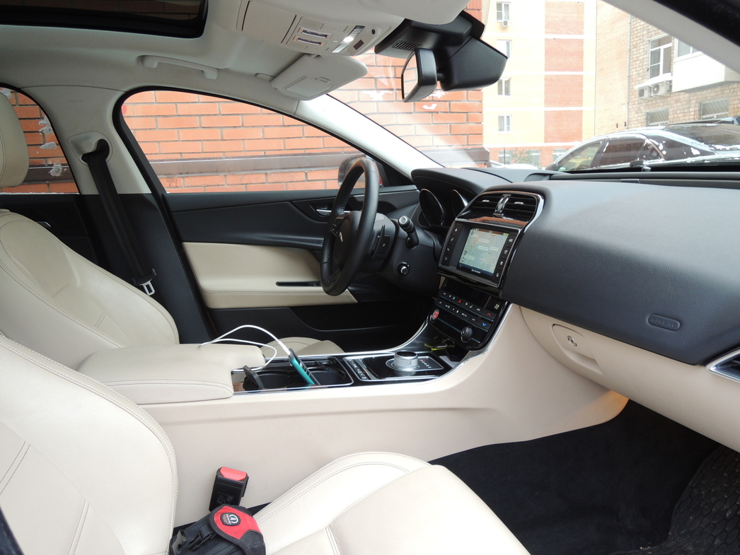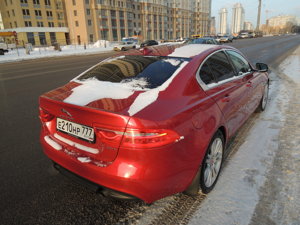 Нам достался заднеприводный ХЕ с двухлитровым турбированным двигателем мощностью 240 л.с. и 8-ступенчатой автоматической трансмиссией, способный разогнать автомобиль до 100 км/ч за 6,8 секунд. Наиболее близким конкурентом такого Jaguar XE можно считать 245-сильный BMW 328i и вовсе неспроста я назвал именно этого соперника. Все дело в том, что своими повадками на дороге автомобили Jaguar вообще напоминают «баварцев», разница может быть разве что в остроте отзыва на руль — все-таки у немцев эта реакция чуть острее. И все же, «дикие кошки» из Великобритании обладают ярко выраженным спортивным характером. При желании можно заказать себе ХЕ с интеллектуальным полным приводом, передающим до 90% крутящего момента на ту или иную ось или более мощным двигателем и тогда можно будет прочувствовать его характер в полной мере. Однако даже заднеприводный ХЕ проявил себя во всей красе и более чем достойно, тем более, что на его нелегкую британскую долю выпало тяжкое испытание в виде сильнейшего российского снегопада. И нельзя не признать, что несмотря на наличие не шипованной резины и полуметрового слоя снега в столичных дворах и переулках, Jaguar ни разу нигде не застрял! Да, порой «коту» приходилось тяжело, и приборная панель начинала неистово мигать всеми возможными индикаторами электронных помощников, но британец все равно достойно справлялся с как всегда неожиданной для коммунальщиков январской непогодой.