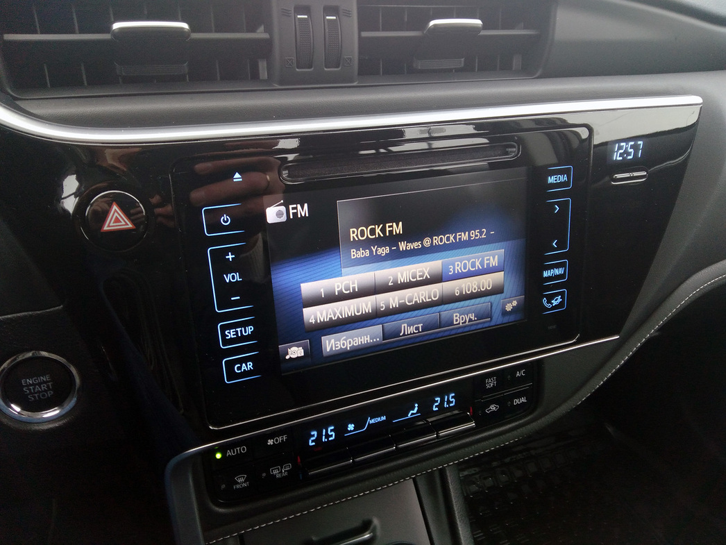 Что же касается интерьера, то и здесь японцы постарались на славу. Нет, сама архитектура салона сильно не изменилась, но при этом на «бороде» поселилась мультимедийная система Toyota Touch 2 с 7-дюймовым дисплеем, полностью закрытая стеклом, блок климат-контроля вместо пресловутых «крутилок» получил качающиеся клавиши а-ля Mercedes, дисплей на приборной панели теперь стал цветным. Выглядит все это богатство просто отпадно, но вот с эргономической точки зрения есть некоторые просчеты. Например, за каким лешим дизайнеры убрали механический регулятор громкости звука, оставив лишь сенсорные клавиши? Пользоваться ими очень неудобно, приходится сильно отвлекаться от дороги. Благо на мультируль не додумались поставить сенсоры, а оставили классические тактильно ощущаемые кнопки.