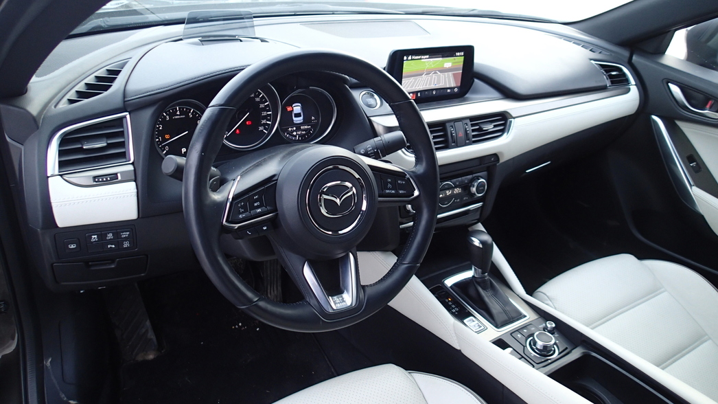 Это чощущается даже в спортивном режиме трансмиссии — динамика безусловно результативная, но настройки руля, работа подвески и полная обойма электронных ассистентов активной безопасности заботливо контролируют как бы чего не вышло, строго дозируя ваш адреналин. Одним словом, былая жесткость и бескомпромиссность Mazda 6 сейчас деликатно прикрыты белым накрахмаленным воротничком, что в принципе вписывается в концепцию современного бизнес-класса.