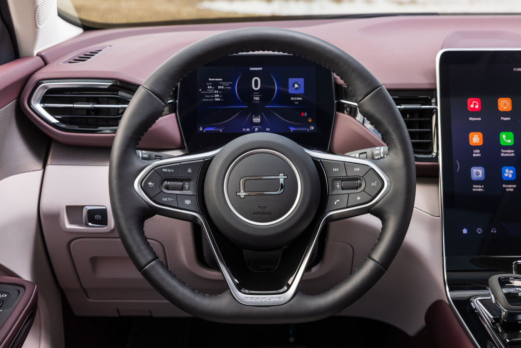 Однако пробоев у нашего героя не было, даже на грунтовке сдержался, но подперев руль коленом, перемещаться по бескрайним просторам не выйдет. Кстати, китайцы в этот раз не погнались за «журавлем», а выбрали «синицу» — на машине стоят относительно небольшие 18-е диски и шины высокого профиля, которые заметно «демпфировали», читай, компенсировали недостатки работы подвески. Предполагаю, будущие владельцы будут бренды благодарны за разумный подход. И шина дешевле, и толку от нее — больше.