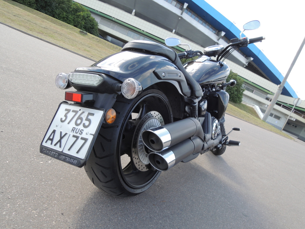 Новый круизер от Yamaha — это очень большой и тяжелый дорожный мотоцикл, внешним видом слегка напоминающий культовый американский бестселлер V-Rod. Тут все построено по классическим канонам жанра – огромный мотор V-Twin с практически автомобильным объемом 1304 «кубика» и жидкостным охлаждением, низкий центр тяжести, большое удобное седло, вилка, выступающая далеко вперед под большим наклоном, широкая задняя 210-миллиметровая покрышка, переднее колесо диаметром аж в 21 дюйм, длинное и низкое шасси, ручки руля отведены назад. Одним словом, выглядит мотоцикл весьма стильно и достойно, внимание на дороге явно привлекает. Тестовый экземпляр окрашен в цвет Midnight Black с матовым покрытием выхлопных труб, цилиндров двигателя и литых колесных дисков. Впрочем, если потенциальный покупатель пожелает быть более ярким и заметным на дороге, то можно выбрать у дилера и другой цвет – «Жидкую Медь» (Liquid Copper).