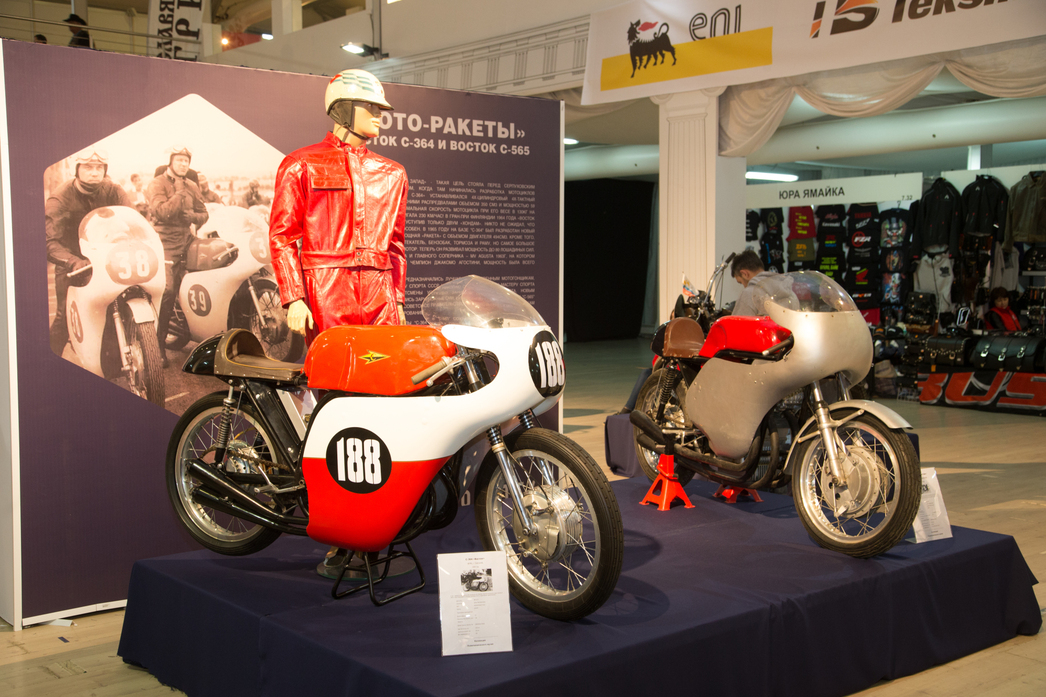 За ними гостей ждали несколько десятков стендов мастерских и магазинов байкерской атрибутики. Почетное место в середине павильона — у первых российских победителей Чемпионата мира по кастомайзингу Zillers Garage. Новые работы не показали, зато старые, дебютировавшие в нынешнем году на «Мотовесне», действительно впечатляют. Почти так же, как и экспозиция Политехнического музея, в которой набрался десяток мотоциклов начала века. Приятно, что помимо старинных иномарок, показали и наши, российские модели. Например, мотоцикл «Россия» 1903 года, выпущенный в Риге, фактически двухколесный «Руссо-Балт» или «Мото-Рев-Дукс» 1908 года, собиравшийся в Москве.
