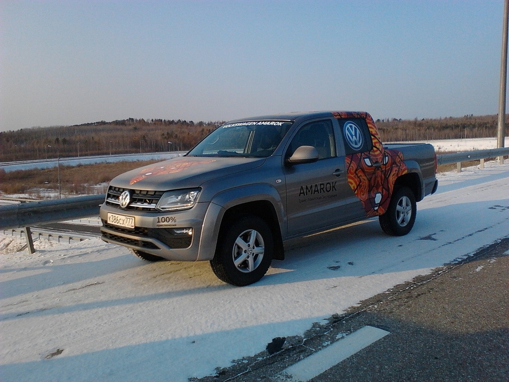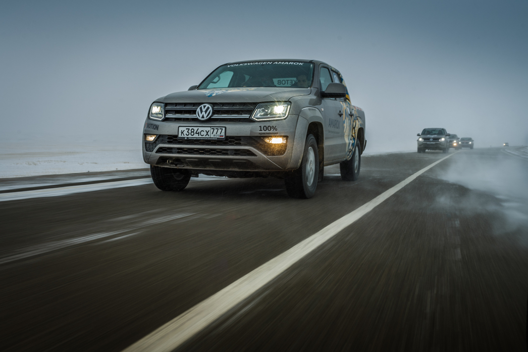 Не знаю, как повел был себя на относительно скоростной трассе пикап с грузовой подвеской Heavy Duty, но наш «Комфорт» и на бездорожье, и на ровном асфальте не доставлял никаких неудобств. Да — рессоры, да — неразрезной задний мост. Но машина шла ровно, превосходно держала траекторию на приличной скорости и не требовала дополнительных подруливаний. Она надежно оттормаживалась даже на скользких участках, хотя, конечно, в условиях сильно минусовой температуры дистанцию мы соблюдали строго. Пожалуй, среди всех пикапов Amarok имеет самый «легковой» характер.