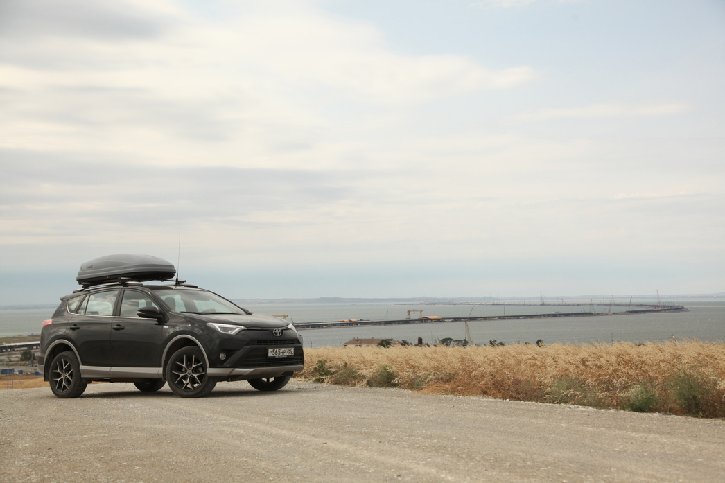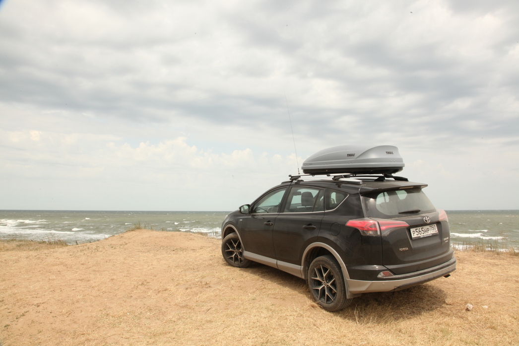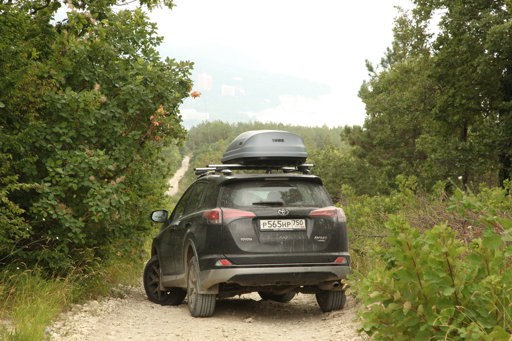 От «престижной» версии кроссоверу достались бесключевой доступ и система открывания пятой двери взмахом ноги под задним бампером, LED-фары ближнего и дальнего света, парктроник, обогрев заднего ряда сидений и электропривод водительского кресла с памятью настроек. В общем, поездка обещала быть комфортабельной. А в качестве бонуса Toyota снабдила наш «равчик» 200-литровым багажником на крышу.