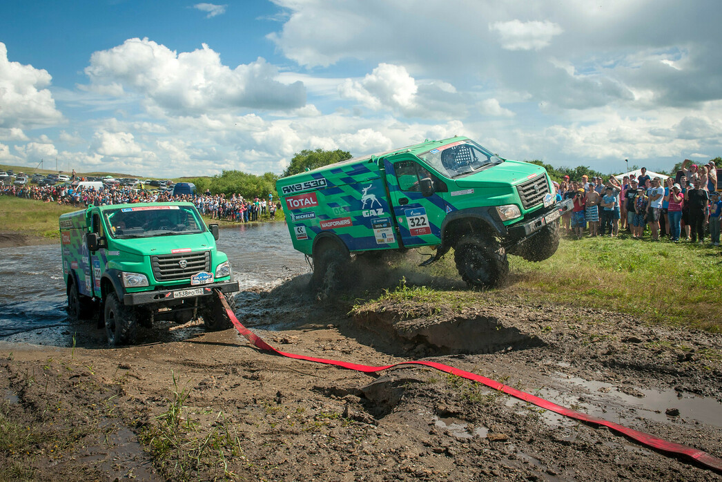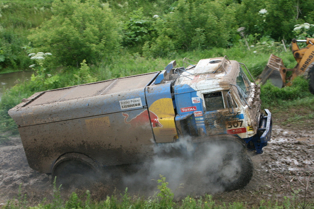 Проблемы начались и у газовцев, которые на этот раз не веселили публику своей знаменитой «хлебовозкой», а выставили два «Газона Next». Увы, аппарат Болеслава Левицкого на одном из бродов получил гидроудар — мотор ЯМЗ-534 позволил слишком динамично войти в брод. У механиков команды в запасе была только одна ночь, чтобы грузовик вновь вышел на гоночную трассу. Другой экипаж Михаила Шкляева (экс-пилот знаменитой «хлебовозки») пока очень внимателен к новой технике и особо не рискует, тем более, что его Next сильно отличается от предыдущего образца. Пока он радует публику лишь любимым дрифтом по грязи и движением в заносе. Но обещает показать возможности своего нового аппарата в степях, а главное — в песках Китая.