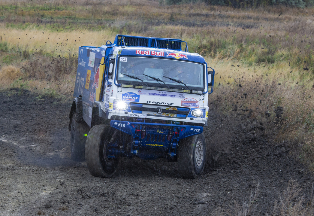 – У нас отличные шины BF GOODRICH, — рассказывает действующий Чемпион России, пилот заводской команды «ГАЗ Рейд Спорт» Евгений Суховенко. — Для ралли-рейда лучшей резины нет. Но даже на ней в ходе пролога были сложности с управлением. Поворачиваешь колеса, а машина вообще не реагирует на поворот руля, едет по инерции как по маслу. Дождь продолжается и что будет на следующий день — а это два круга по 160 км — неизвестно…