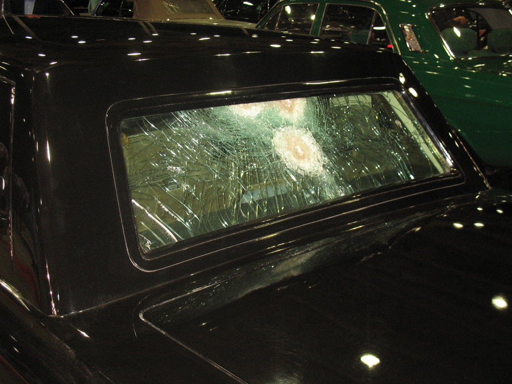 В рядах советских лимузинов, сверкающих полированными черными боками и хромированными деталями совсем неожиданно выглядит «побитый жизнью» бронированный «членовоз» ЗИЛ-4105. Одно из толстенных боковых стекол в трещинах, а на заднем и вовсе отчетливо видны следы попадания пуль. Оказывается, перед нами – экспериментальный экземпляр. На нем в 1980-е проводились испытания только что созданной специалистами в СССР новой специальной защиты автомобильных стекол и кузова: ЗИЛ подвергли обстрелу из автоматов и другого стрелкового оружия.