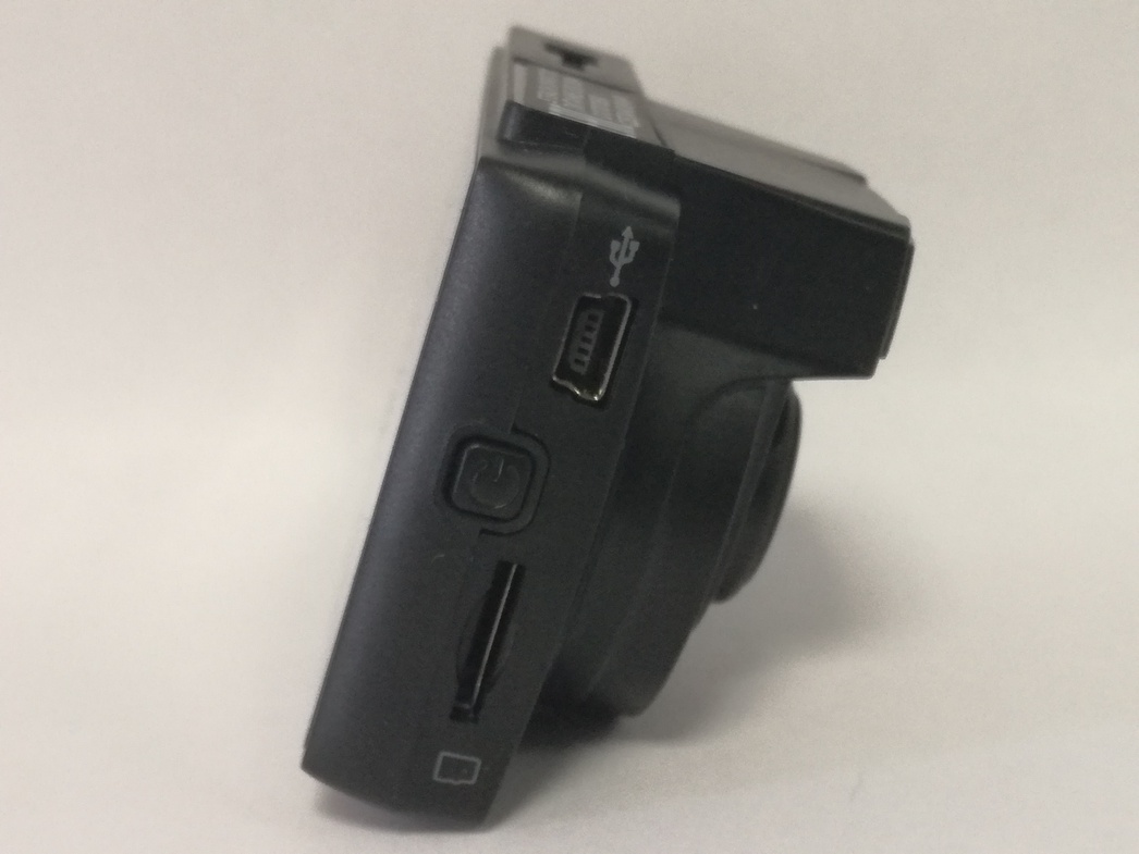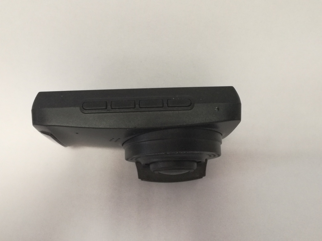 На одной из боковых граней расположен слот для карты памяти microSD, кнопка вкючения/выключения устройства и USB-разъем, к которому подключается и провод питания от прикуривателя. Для работы с настройками и просмотра видео тут имеется ЖК-дисплей с диагональю 2,7 дюйма — пожалуй, оптимальный для таких целей размер. Достаточно большие и легко нащупываемые даже без взгляда на экран кнопки управления расположены на нижней грани устройства. Их всего четыре.