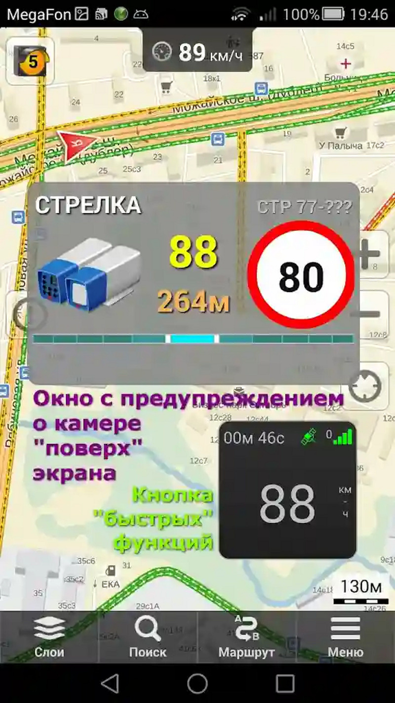 Да, софт подсказывает, где стоят камеры, измеряющие среднюю скорость, и местоположение других радарных комплексов. Но вот частные камеры, получившие сегодня катастрофически массовое распространение, приложение не определяет, лишь примерно подсказывая, где такая «засада» теоретически может встретиться.