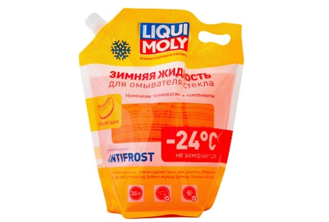 В числе «незамерзаек», которые уверенно прошли тест на поликарбонаты и уже доступны российским автомобилистам, стоит выделить составы под названием Antifrost Scheiben-Frostschutz с цифровыми символами −20 С и −27С. Как можно догадаться, последние две цифры в обозначениях соответствуют температуре начала кристаллизации на морозе.