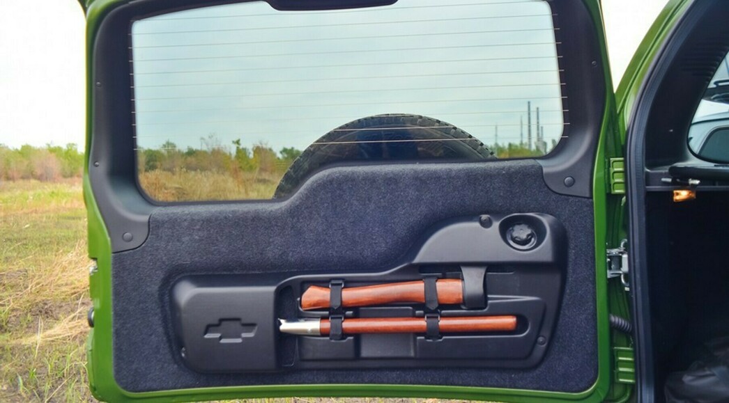 Спецверсия оснащена лебедкой T-Max, дисками черного цвета 7Jx16H2, шинами Cordiant R16, экспедиционным багажником, кожаным рулем, спортивными сиденьями с зеленой прострочкой, решеткой для багажного отделения. На внутренней панели задней двери установлен кожух с лопатой и топором. При этом техническая часть автомобиля осталась без изменений. Как сообщил «За рулем.РФ» со ссылкой на представителя завода, компания уже сейчас предлагает ряд внедорожных аксессуаров от специальной версии для обычных Chevrolet Niva.