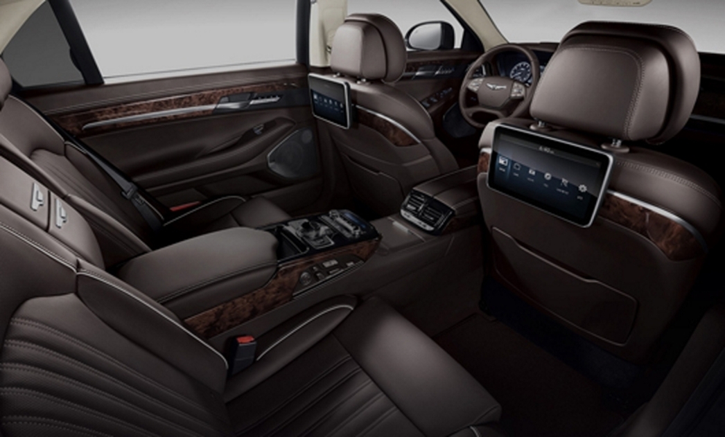 По законам жанра салон отделан натуральной кожей и деревом. Если у Equus панель приборов была цифровой, то G90 получил аналоговые циферблаты. В станадартную комплектацию премиального седана входят девять подушек безопасности, трехзонный климат-контроль, адаптивное рулевое управление, электропривод и вентиляция передних сидений.