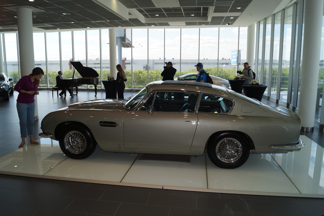 Специально к презентации в столичный шоу-рум доставили из Англии знаменитый автомобиль Джеймса Бонда – Aston Martin DB10, одну из трех уцелевших машин, на которой Дениел Крейг вытворял свои неописуемые трюки в 24-ой киноленте «Спектр».