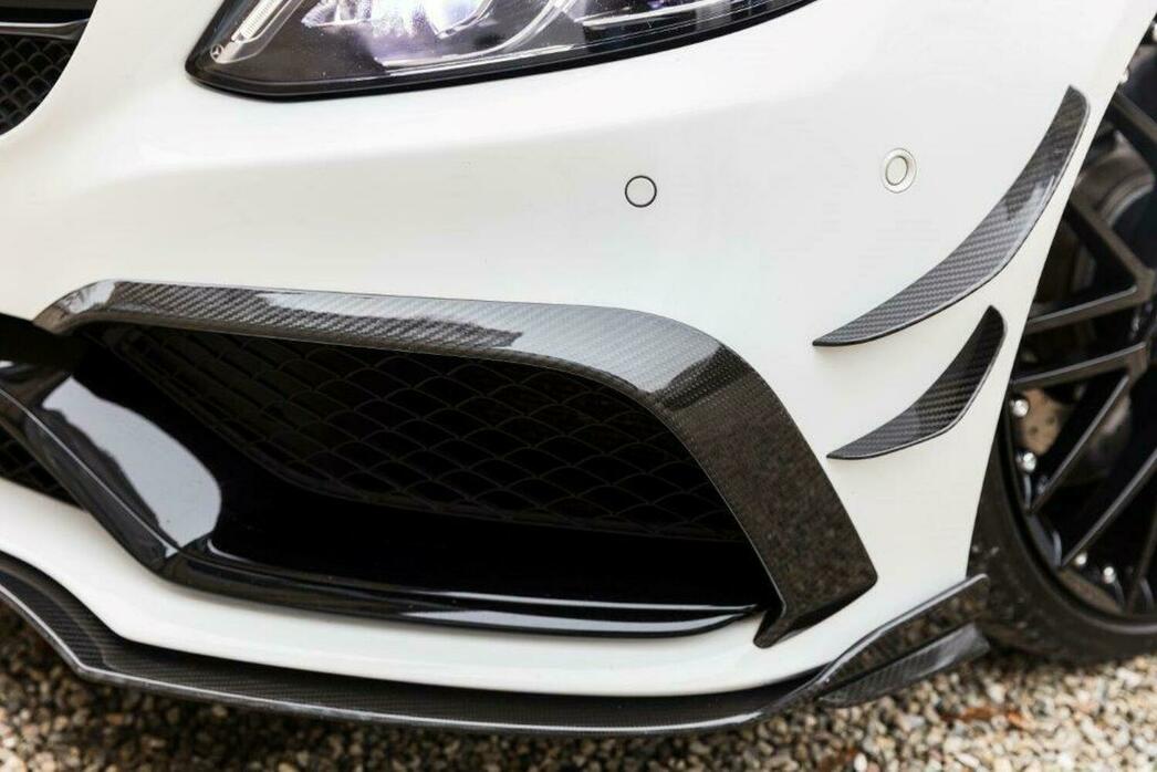 Внешность СС63 S — именно такое название присвоено модели, выехавшей из ворот ателье — доработали в соответствии с темпераментом. Бамперы получили эффектные карбоновые элементы, на переднем появились боковые элероны, а задний украшают новые патрубки выпускной системы. Передние крылья дополнены декоративной накладкой, а на крышке багажника прописался спойлер — опять таки из карбона. Дополняют картинку 20-дюймовые диски с шинами Michelin Pilot Super Sport.