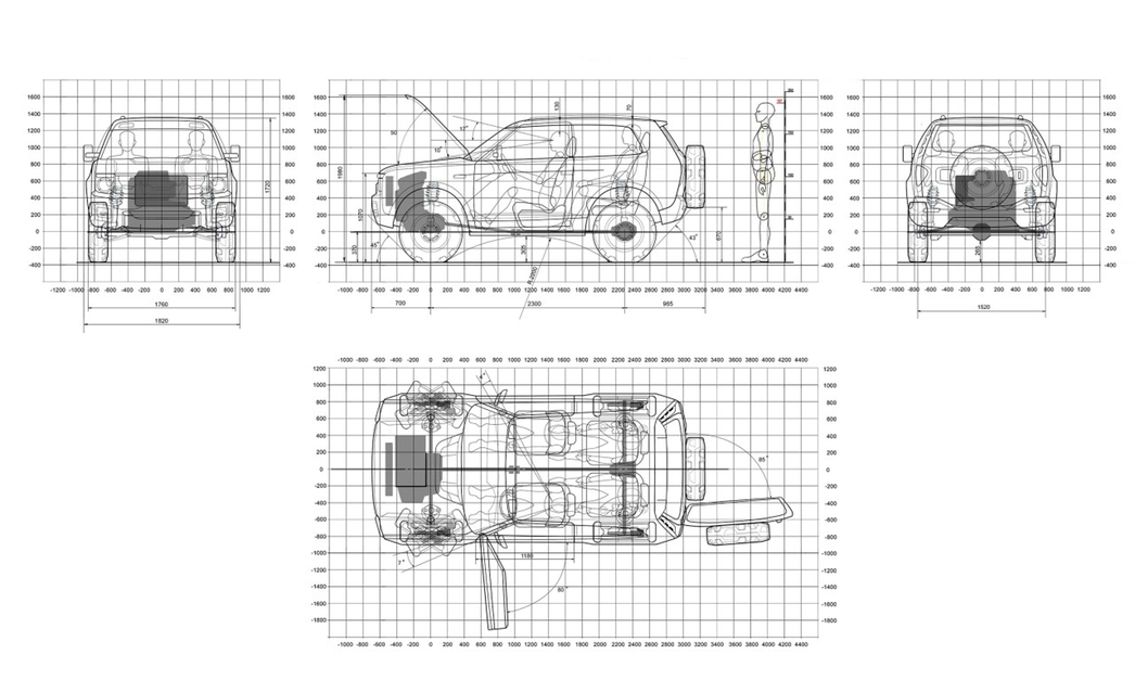 Созданный им прототип новой LADA 4x4 в плане дизайна сохранил некоторое сходство с машиной 40-летней давности, но по части конструктива претерпел серьезные изменения. Во-первых, увеличилась на 100 мм колесная база. Во-вторых, машина прибавила в габаритах — по высоте она выросла на 80 мм, а в длину — на 100 мм. В итоге пришлось изменить размеры дверных проемов и углы наклона передних стоек.