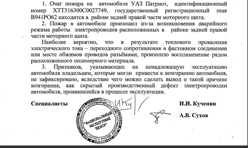 Впрочем, буквально на днях ульяновцы все же учли мнение специалистов, проводивших подобную экспертизу. Более того: они решили не доводить очередной случай, связанный с воспламенением UAZ Patriot, до суда.