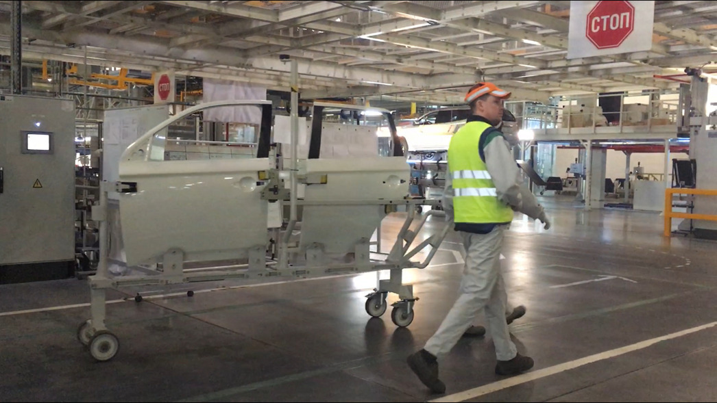 Далее автомобиль лишают дверей — это делается для того, чтобы освободить доступ к будущему салону. Кузов становится на конвейер, и машина постепенно наполняется электропроводкой, приборной панелью, деталями шумо- и теплоизоляции. На этой же стадии кроссоверы и внедорожники получают стекла — клей на них наносится роботом, а установка осуществляется вручную. И вот уже специалисты проверяют качество нанесения краски и технической «начинки». Вторая проверка пройдена успешно? Добро пожаловать на заключительный, самый важный этап по «загрузке» двигателя, трансмиссии и подвески. Когда все «внутренние органы» занимают свои места, авто получает обратно и двери.