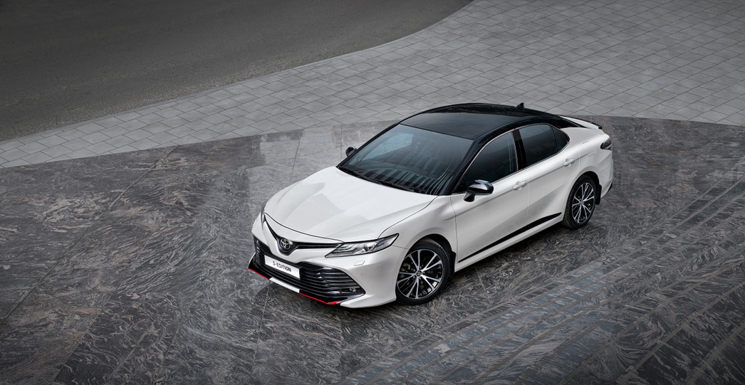 Такой автомобиль получил два варианта расцветки: полностью черную и эффектную двухцветную, сочетающую белый перламутровый оттенок с черным металликом. В последний окрашены стойки, крыша и корпуса боковых зеркал, а еще часть радиаторной решетки и задний спойлер. Кроме того, Camry в версии S-Edition оснастили 18-дюймовыми легкосплавными дисками в эксклюзивном исполнении.