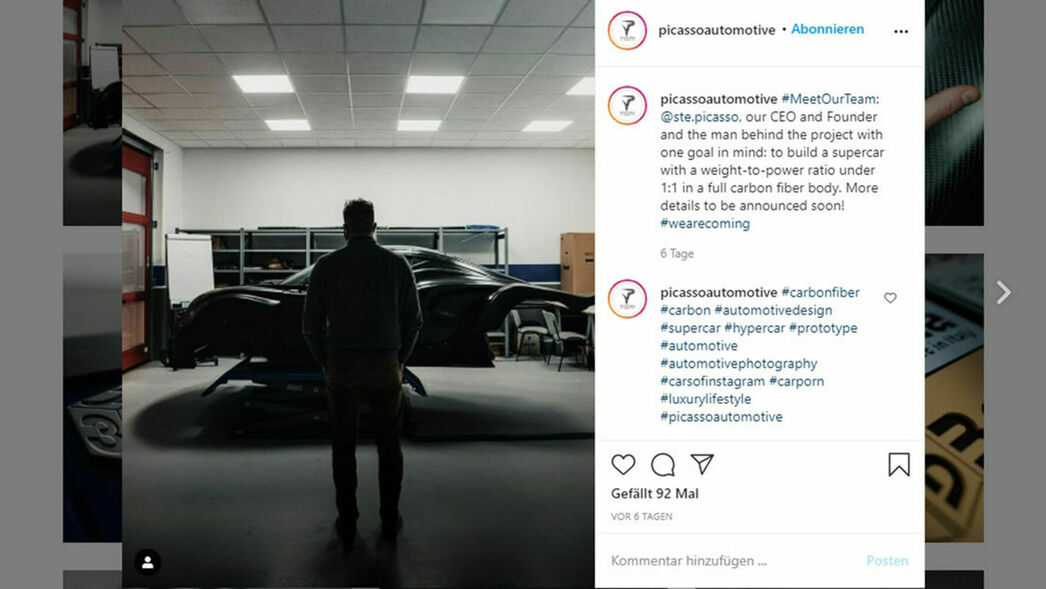 Стартовый суперкар 2021 года имеет имя вовсе неожиданное: Picasso. Компания Picasso Automotive совсем свежая, зарегистрирована в Лугано 18.12.2019 Стефаном Пикассо при поддержке друга и соратника, дизайнера Роберто Курто, в основном известного грандиозными яхтами для миллиардеров и обликом двух мотоциклов Ducati Elefant 1200 или Suzuki DR Big 1000. Фамилия Пикассо вызывает гарантированное любопытство.