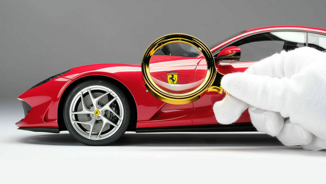 Максимально точной, чтоб совпадал не только цвет, но и мелкие подробности модификаций, спецверсий, ограниченных серий. Поэтому Ferrari договорилась с британским производителем масштабных моделей Amalgam и отныне покупатель настоящего Ferrari может сразу заказать точную копию авто в масштабе 1:8 или 1:12. Увы, тут итальянцы просчитались.