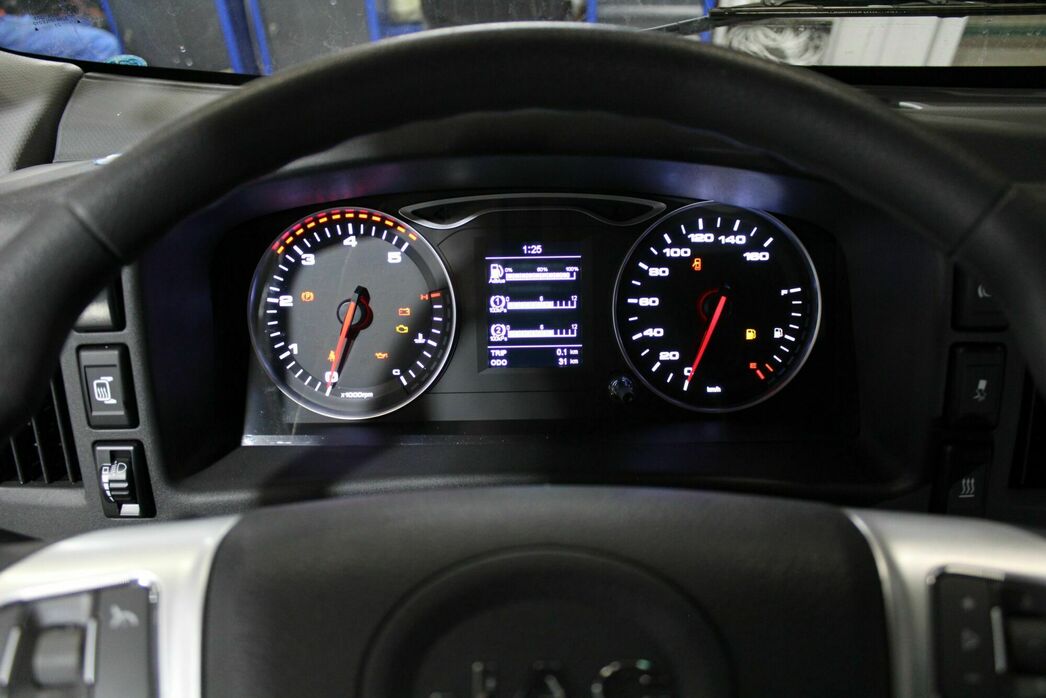 Обновленные грузовики получили новую комбинацию приборов, что отличается более крупным дисплеем бортового компьютера. В бортовом компьютере, помимо прочей информации, теперь отображаются и указатели давления по контурам тормозной системы.