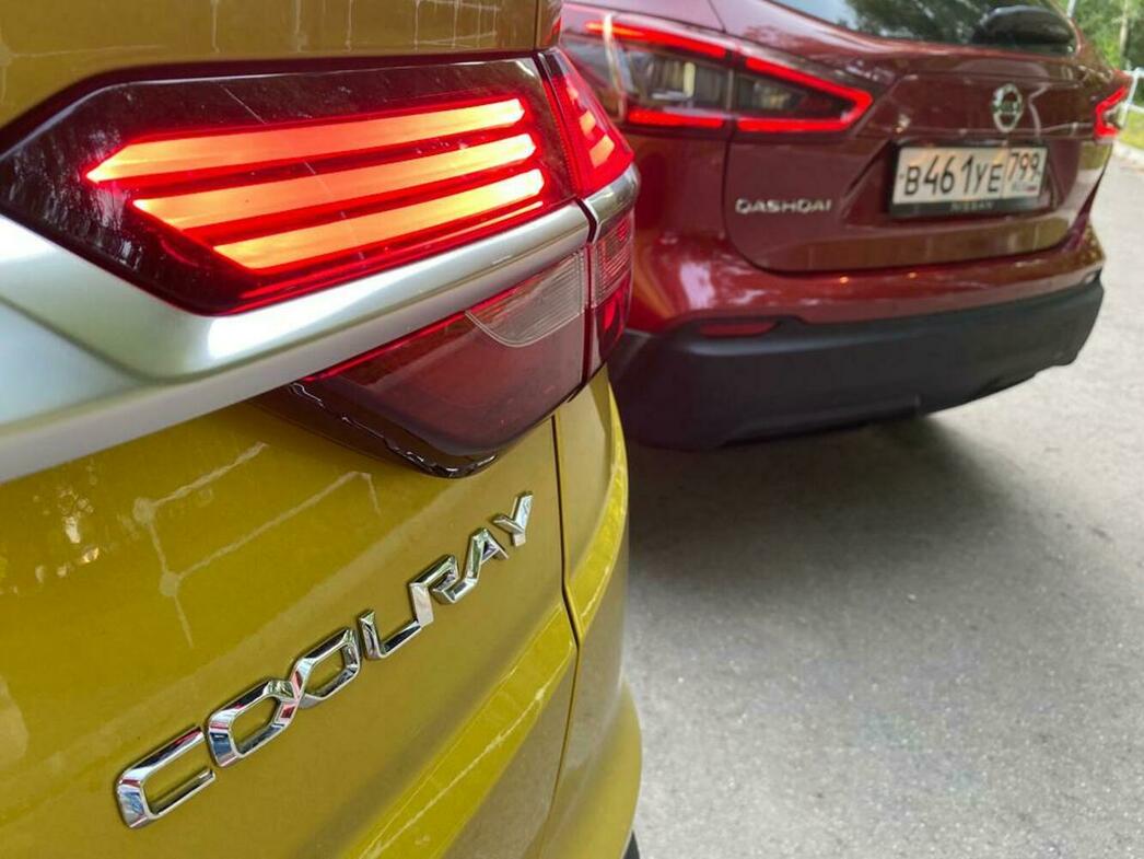 Внешне «Кашкай» выглядит спокойным, и хоть это представитель специфического японского мировоззрения, по-европейски аккуратным, а где-то даже прагматичным. Скажем, пороги автомобиля отлично защищены от грязи, а дорожный просвет составляет приличные 200 мм. Coolray — полная противоположность. Он — яркий, модный, молодежный. Сзади — крупный а-ля гоночный спойлер, а еще есть вариант оформления в двухцветном окрасе.