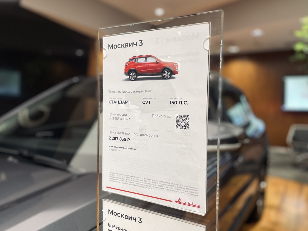 Но самое поразительное во всей истории с Москвичом — отсутствие навязанных «допов». Машины действительно продают по тем ценам, что указаны на сайте производителя. Да и на выставленных в шоуруме экземплярах из «лишнего» можно отыскать разве что коврики. Причем за них просят не десятки тысяч рублей, как у иных брендов, а вполне адекватный «трешник». Но это не значит, что дилерам нечего предложить. Защита картера, сигнализация, «антикор» (хотя машины оцинкованы с завода) — пожалуйста, что угодно.