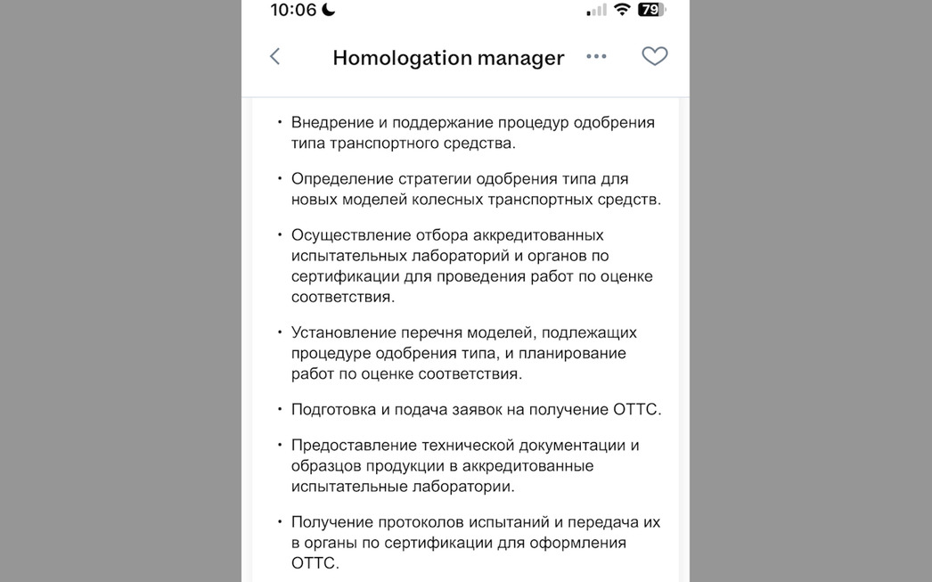 Компания Kia, помним еще такую, ищет сотрудника, которому предстоит заниматься, внимание, внедрением и поддержанием процедур одобрения типа транспортного средства, определением стратегии одобрения типа для новых моделей колесных транспортных средств, отбором аккредитованных транспортных лабораторий и органов по сертификации для проведения работ по оценке соответствия, подготовкой и подачей заявок на получение ОТТС, контроль за проведением работ и далее по списку.