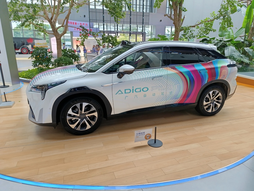 Рядом — робо-такси, то есть такси без живого водителя. Сейчас это ключевое направление многих китайских производителей. Конкуренция в отрасли жесточайшая, потому как это перспективный рынок, сулящий гигантские прибыли. GAC при поддержке таких технологических гигантов как Tencent и Huawei, разработал технологию ADiGO Pilot.