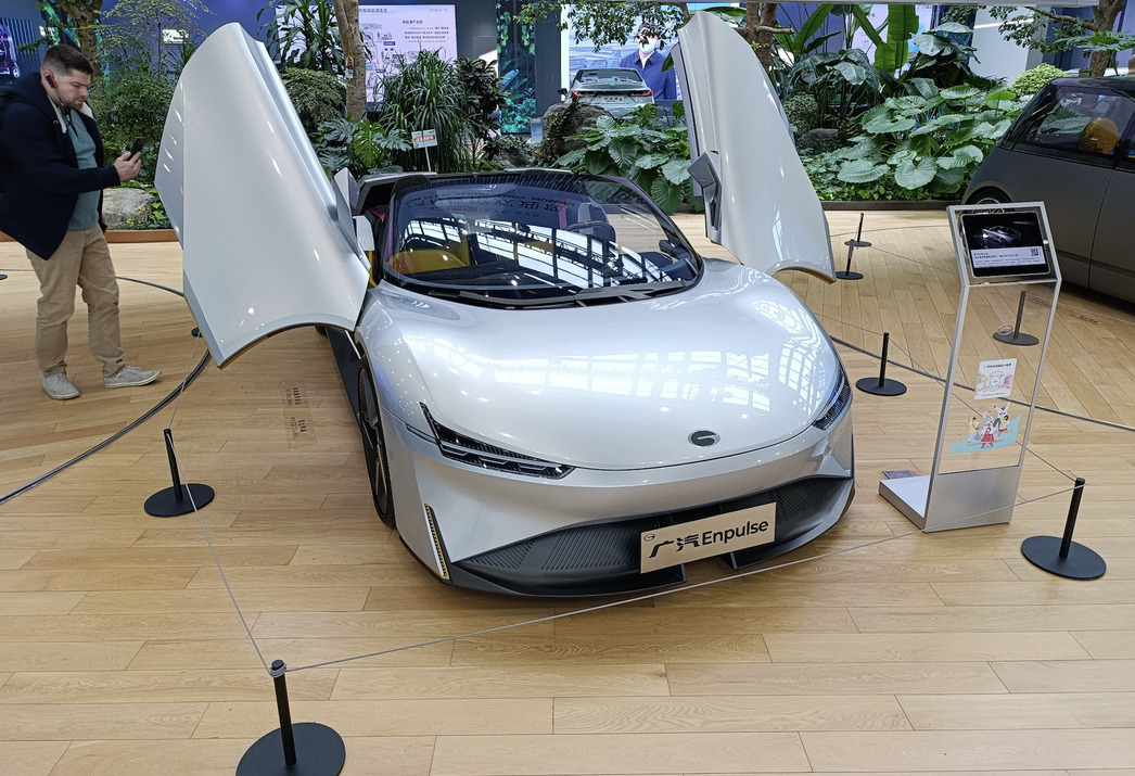 Ну и под конец — совсем уж «фантастичная фантастика»: летающее такси с вертикальным взлетом Govy AirJet и концепт GAC Trumpchi Enpulse. Одна из особенностей шоу-кара называется Virtual Battle. При движении по гоночному треку бортовой софт может создавать водителю виртуальных соперников. Их видно в зеркалах бокового обзора и на проекционном экране. Настоящий сплав реальных гонок и виртуального симулятора.