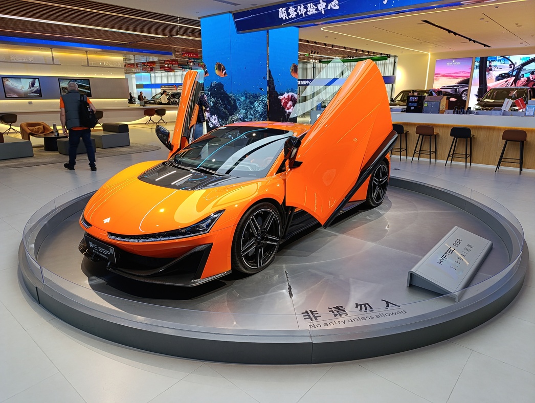 Заглянули мы и в центр R&D разработок. Посмотрели на инновации. Тут буквально разбегаются глаза. Вершина китайской инженерной мысли — гиперкар Hyptec SSR — 1225 лошадиных сил, разгон до сотни за 1,9 секунды. Его, кто забыл, уже выпускают серийно.