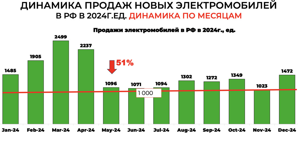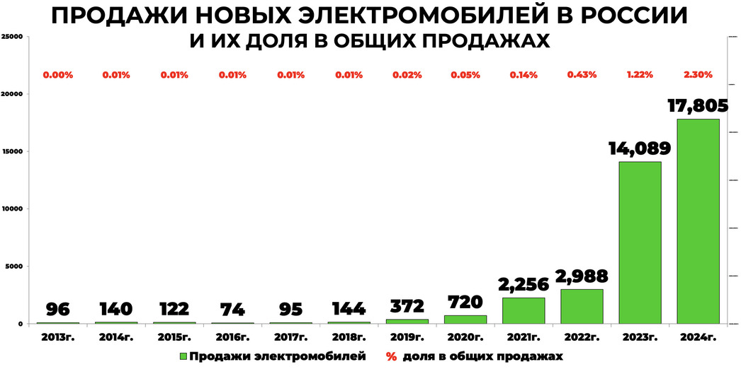 Да, это на 26,4% больше, чем годом ранее, когда борцы за экологию и просто любители произвести впечатление раскупили 14 089 штук. Однако темпы роста продаж резко упали: к примеру, в 2023-м поголовье новых электромобилей в России выросло в 4,7 раза.