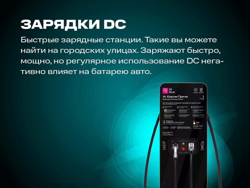 «AC-зарядка (переменный ток) — медленно, но полезно. Ток идет через встроенный в авто контроллер, который бережно распределяет энергию. DC (постоянный ток) — быстро, но с высокими для батареи токами. Постоянные DC-зарядки могут сократить срок жизни аккумулятора, поэтому ими лучше пользоваться только в дороге», — объясняет Николай Бабинов, продакт-менеджер бренда SMARTWATT.