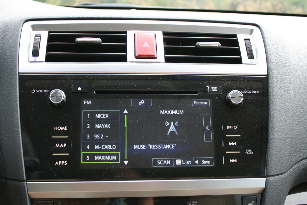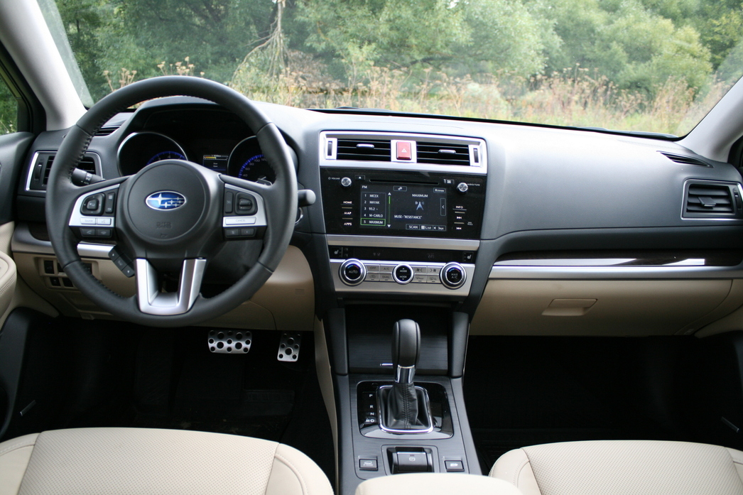 Если убрать эмблему Subaru с руля, сходу и не определишь, в какую машину тебя занесло. Хотя если раньше ездил на Subaru, подобная идентификация произойдет сразу. Поскольку идеология интерьера осталась прежняя, «субаровская». Все нужные кнопочки-управлялки на руле присутствуют, монитор бортового компьютера на приборной панели выдает стандартный набор информации, тач-скрин мультимедийного центра – как планшетник к центральной консоли прилепили. Камера заднего вида транслирует «картинку» на него же. Под левой рукой появилась кнопочка электропривода задней двери – у предыдущего Outback такого не было.