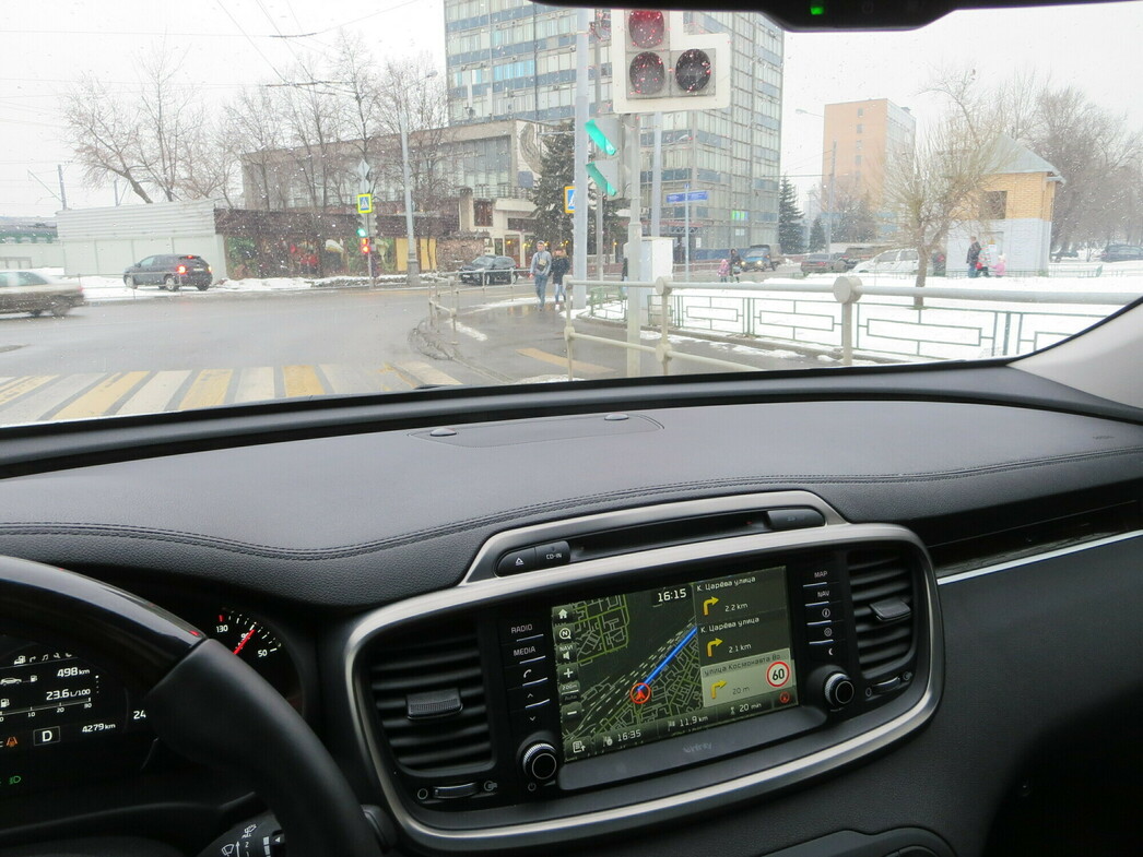 Но самый коварный алгоритм программисты заложили в управление полным приводом, добившись неординарной колесной формулы... 4х1. На скромном снежном покрове Sorento Prime не счел необходимым подключать задний привод, предпочитая развлекаться веселым звоном единственного работоспособного колеса (Michelin Latitude X-Ice M+S 235/55R19).