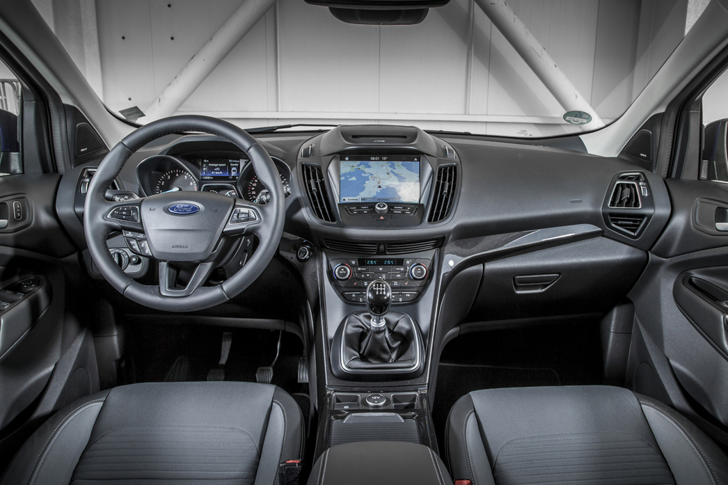 В салоне в глаза сразу бросается обтянутая кожей новая трехспицевая «баранка» с идеальным хватом и функцией обогрева — самый «айс» для активной рулежки зимой. А еще «Куга» раз и навсегда простилась с привычным «ручником» — ему на смену пришел электронный стояночный тормоз. А какие здесь кресла — просто шик: в них утопаешь, словно плюхнулся на диван в бизнес-классе самолета.