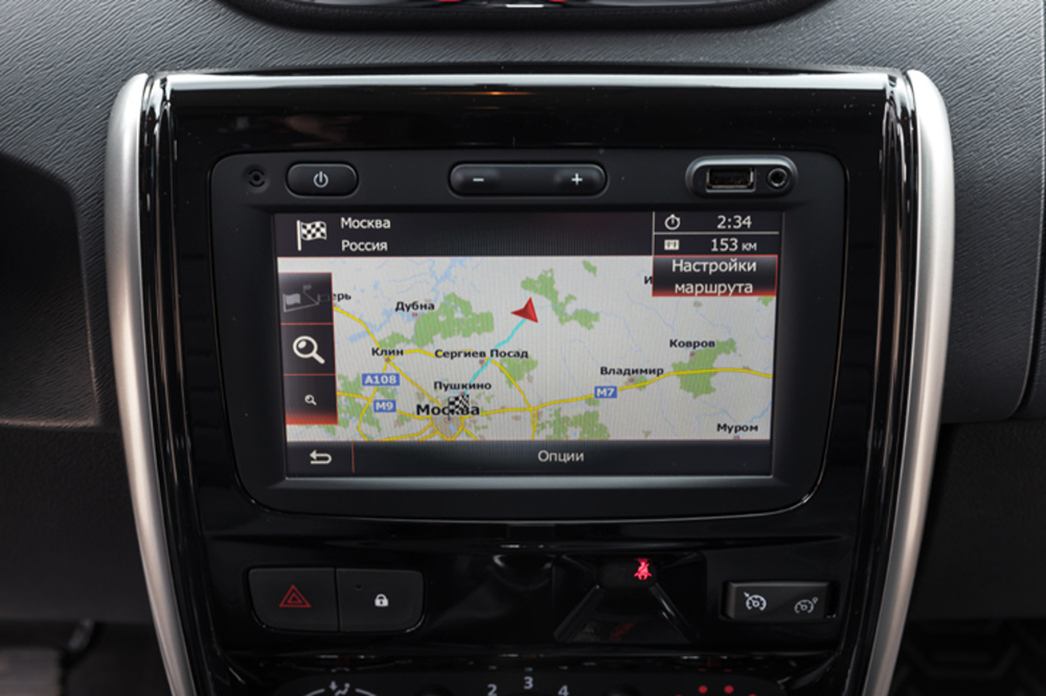 Коль мы затронули мультимедийную систему, то нельзя обойти стороной ее головную часть — 7-дюймовый сенсорный дисплей. На этот «телевизор» выводится не только банальная информация о названиях радиостанции, проигрываемой композиции с «флешки» и прочей требухи, но и навигация, а также картинка с камеры заднего вида. Правда, вся эта красота доступна лишь в топовой комплектации Tekna.