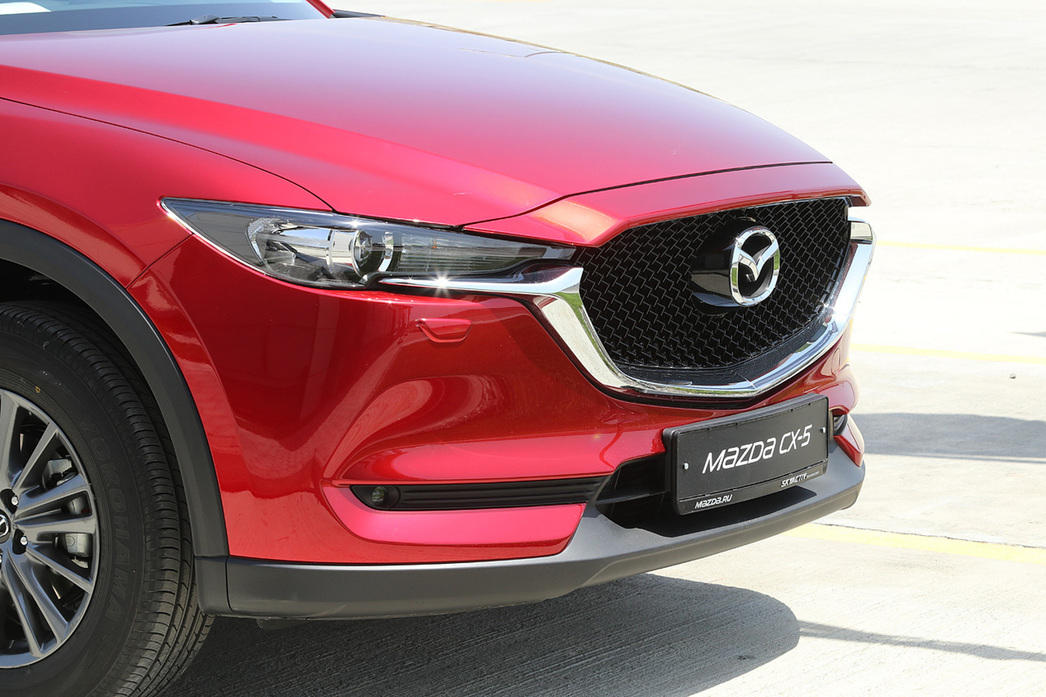 Раз уж начал я с внешних особенностей, то обсудим облик нового СХ-5. «Японец» возмужал, стал агрессивнее и визуально дороже. Хищный клюв капота нависает над ячеистым щитом радиатора, из которого выступает эмблема Mazda; изящный переход между светодиодными фарами и решеткой; объемные хромированные элементы — рассматривать детали интересно и приятно. Передние стойки перенесли на 35 мм назад, что прибавило профилю кроссовера динамичности. Корма претерпела минимум изменений, разве что на задних фонарях появились небольшие направляющие, регулирующие поток воздуха.