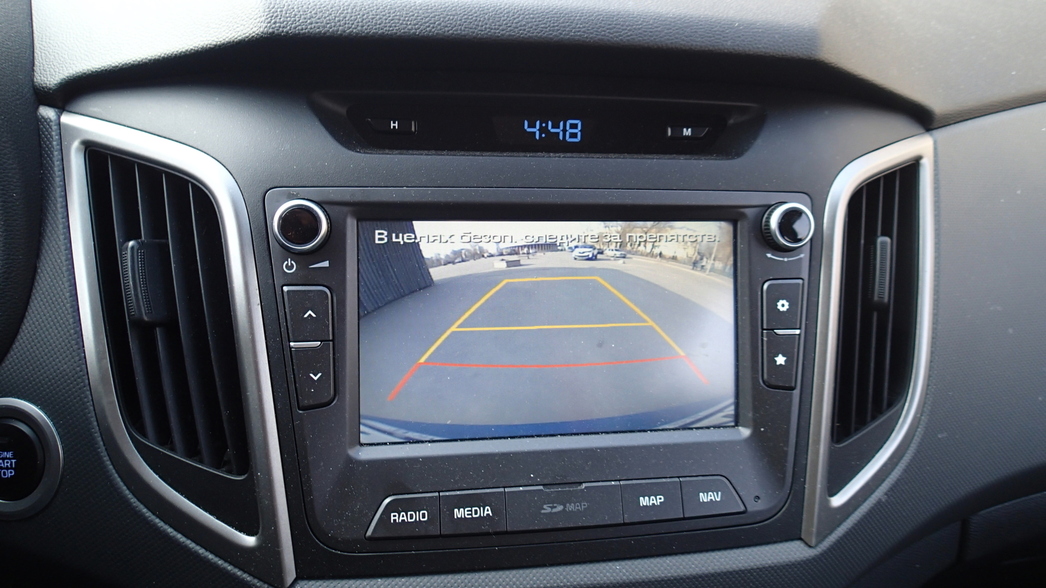 Та же песня звучит и в интерьере «Креты»: из типично «корейского» здесь только рельефное торпедо и крупные лепестки дефлекторов вентиляции, а все остальное оформлено сердито и без озорства, но главное — практично. С эргономикой и функциональностью особых проблем нет, хотя пятидюймовый экран медиасистемы мог бы быть и покрупнее. В общем и целом, явная экономия в глаза не бросается, хотя материалы отделки предельно просты и не так дороги.