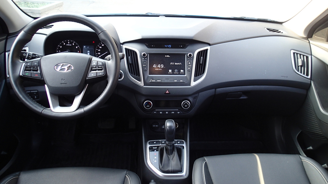 Корейцы хорошенько постарались «раздуть» салон «Креты» до максимально возможных размеров, и им это удалось. Спереди ничто не помешает с комфортом разместиться рослому и «широкому» водителю. В топовой версии, которая побывалана тесте портала «АвтоВзгляд», руль регулируется и по высоте, и по горизонтали. Сидения вроде бы совсем не балуют выдающимся профилем, но оказались вполне удобными даже в дальнобойных поездках. У кроссовера неплохая обзорность, и к тому же производитель совсем не экономил на крупных боковых зеркалах.
