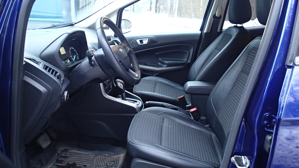 Есть еще один нюанс: новый трехцилиндровый моторчик Dragon доступен только для переднеприводных комплектаций, зато его небольшой вес и хорошая тяга в среднем диапазоне придает машинке весьма позитивную динамику. Как водится, силовой агрегат заметно оживляется после 3000 оборотов в минуту, правда и шум от его работы уже становится слышен. При том, что шумоизоляция в целом у Ford EcoSport неплохая.